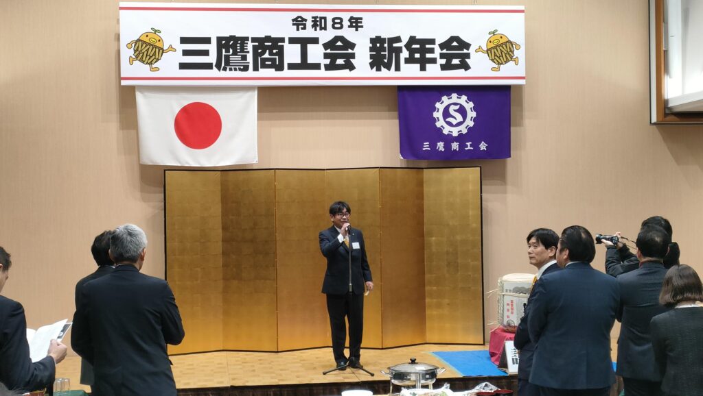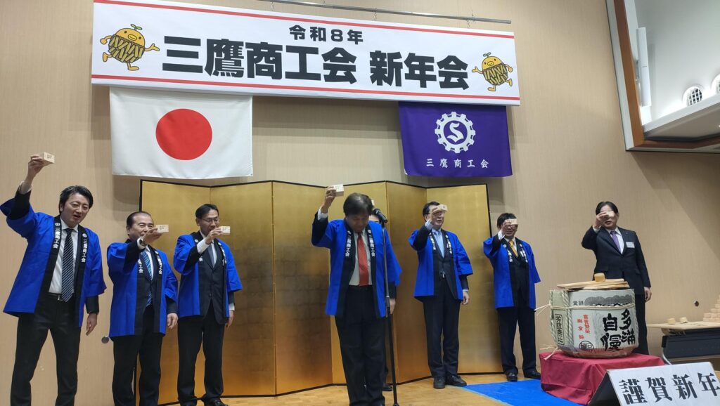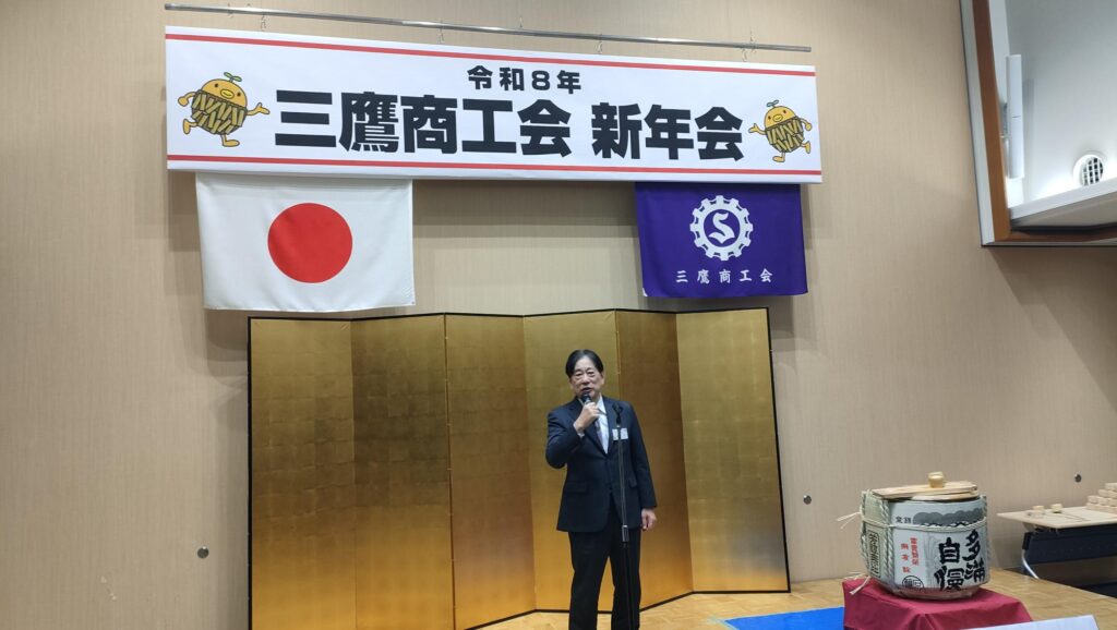 三鷹商工会 新年会参加報告 2026年1月17日 最終更新日時 : 2026年1月17日 SOHO事務局 三鷹市商工会の新年会に参加しました。市長・教育長・市議会議長・武蔵野商工会会頭はじめ、多数の方とご挨拶・懇親をさせていただきました。